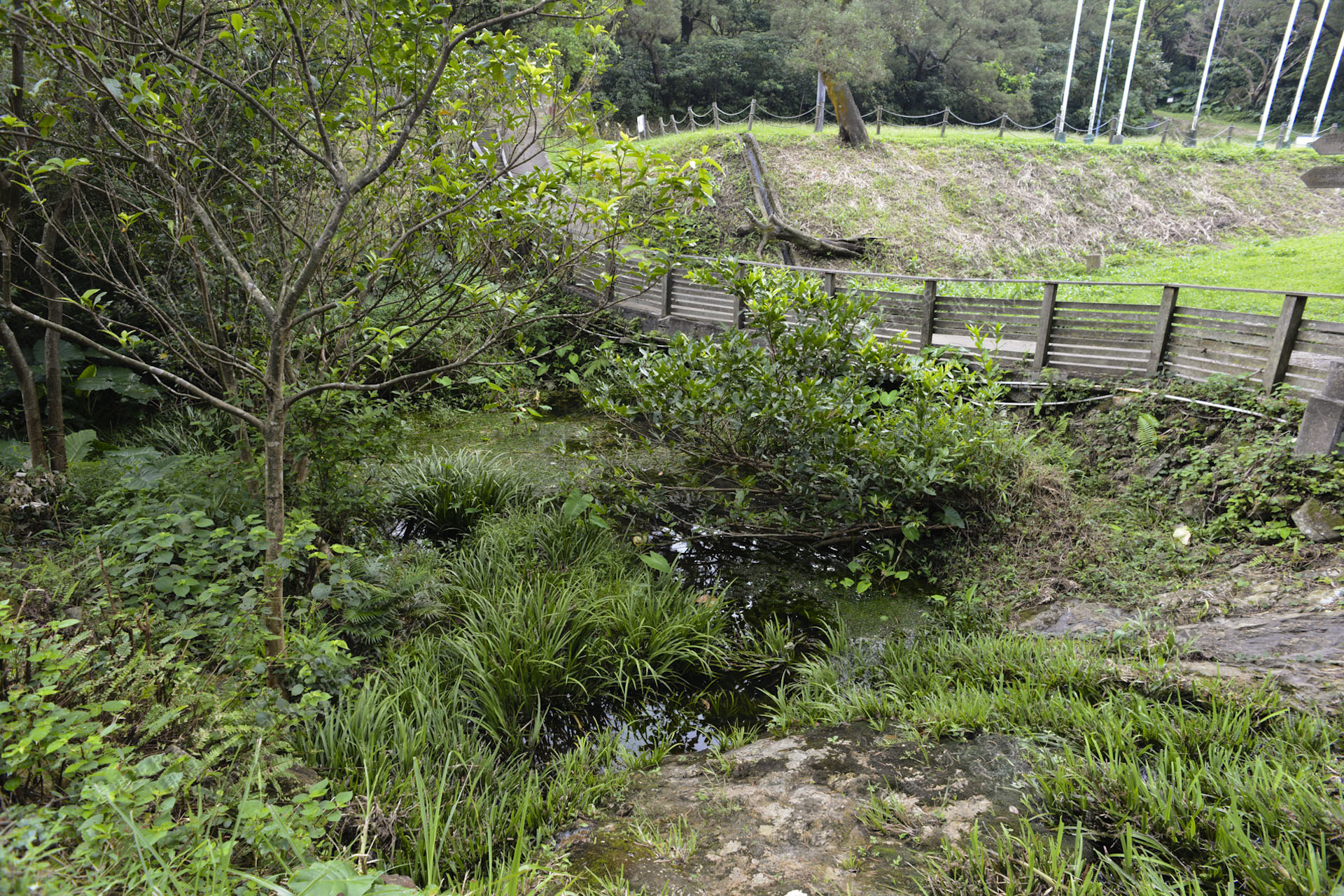 營區有16個草地露營區,以及活動廣場、升旗場,皆為草地生境,兩旁有樹木圍繞。營地中間有一小溪流過,溪中可發現不同動物和昆蟲。