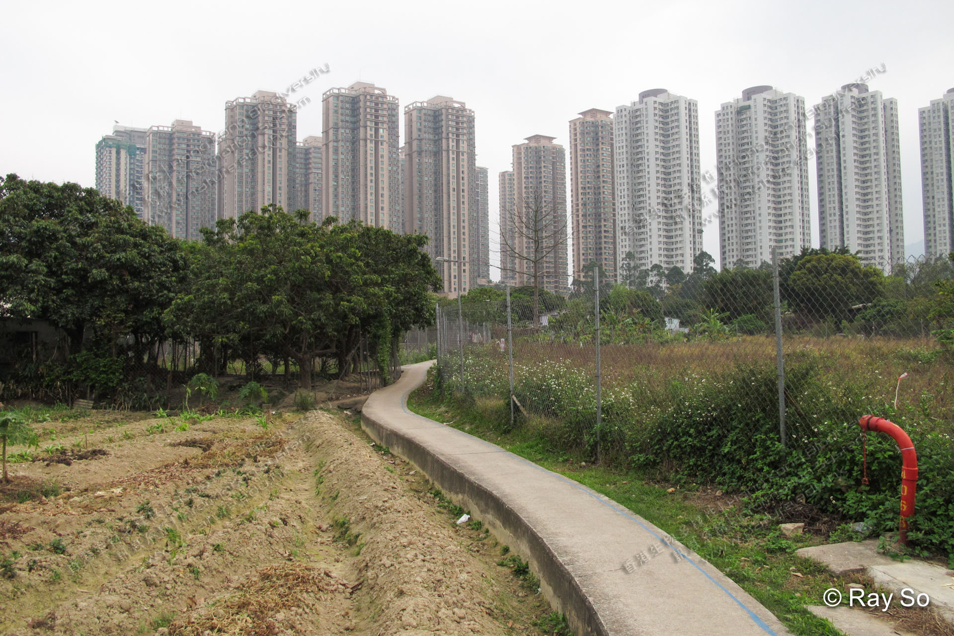 Since 1996, Henderson Land Development has been purchasing lands, forcing villagers to leave. Recently the village is included in the North East New Territories New Development Areas. Although villagers and the general public strongly object to the scheme, the government insist on carrying on with it. The biodiverse farmlands will have to give way to housing development.