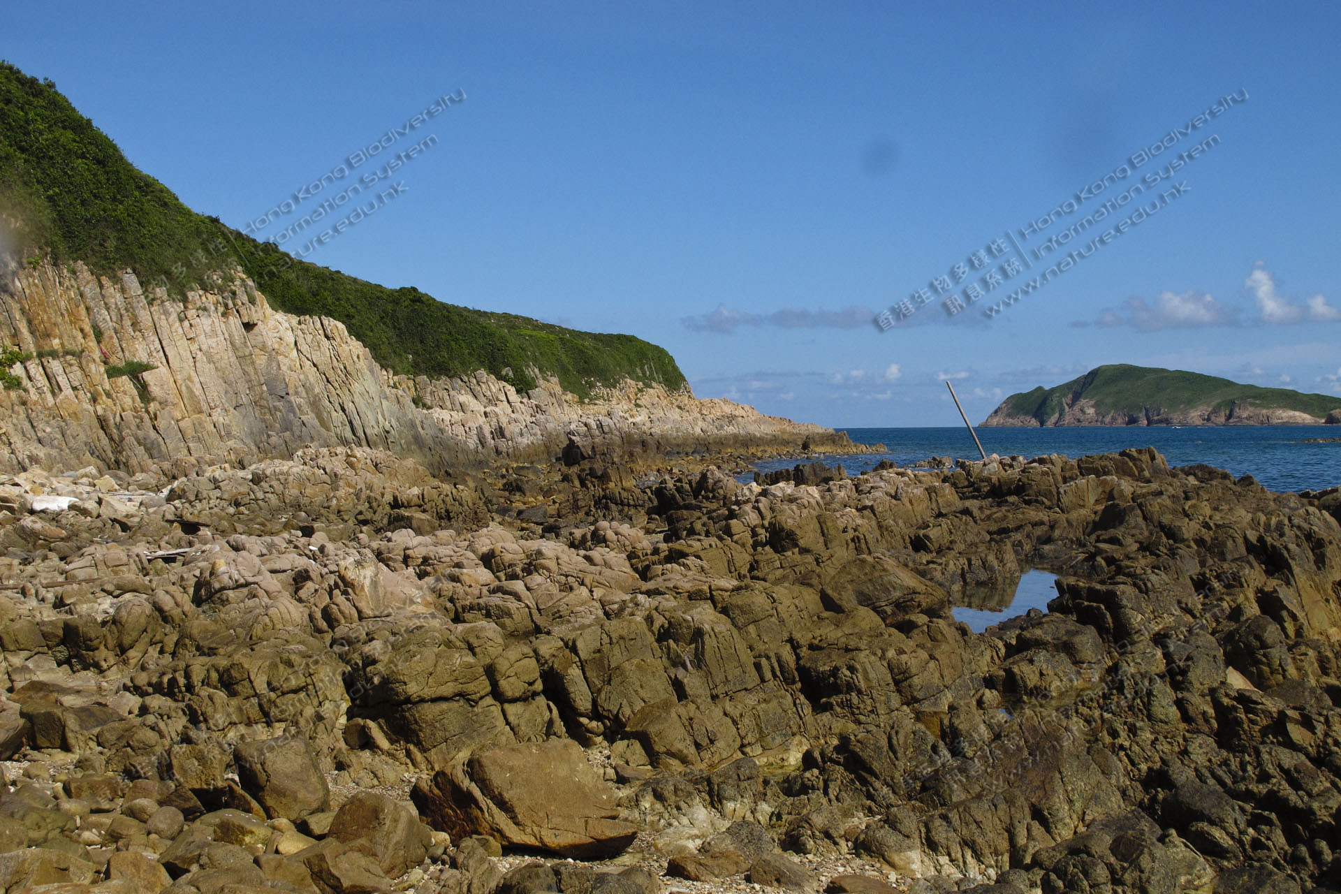 Pak Lap, situated near High Island Reservoir, is a camping and star-gazing hotspot. Inside the area are Pak Lap Camping Site and Pak Lap Village. The village has a history of around 300 years and there reside the Laus, a Hakka family. Because of its beautiful scenery, Pak Lap is called 'a secluded paradise' or 'the Maldives of Hong Kong'. It has diversed habitats. Close to the camping site there is a freshwater stream, and around the site are shrubs. Behind the village is a piece of fengshui woods. Near the coast is a rocky shore. Around the shore there are even gaps and caves. Gazing at Po Pin Chau from Pak Lap, one can see hexagonal stone columns formed from wave-corroded volcanic rock, which make a splendid natural feature.