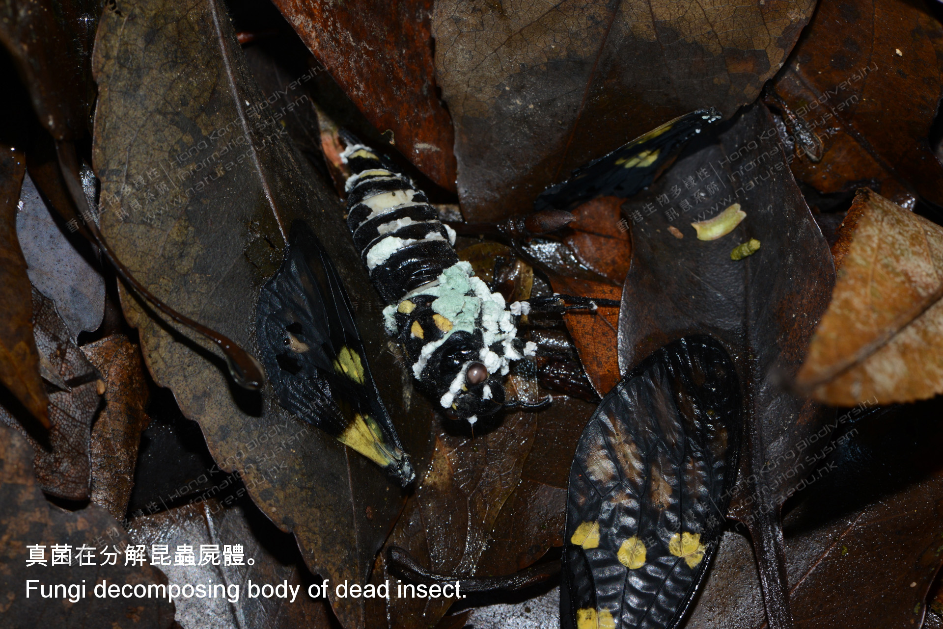 Decomposer (also called reducers) are organisms that break down organic matters in dead organisms or or animal excrements into inorganic matters, which are then absorbed by producer and enter the food chain again.